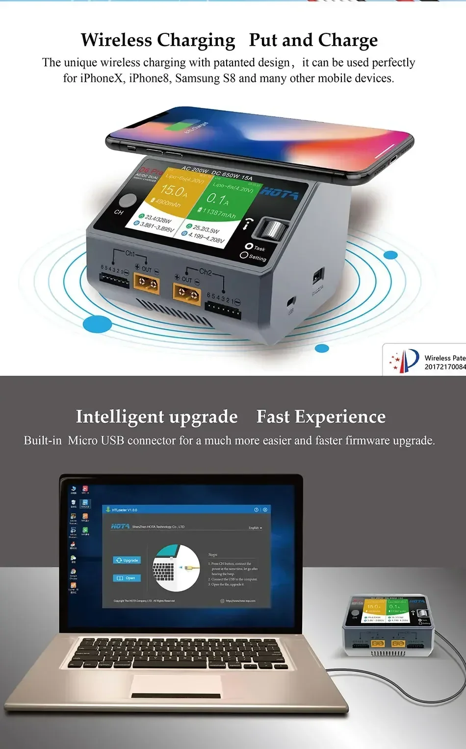 Wireless Charging, Put and Charge - The unique wireless charging with patented design, it can be used perfectly for iPhoneX, iPhone8 and many other mobile devices.