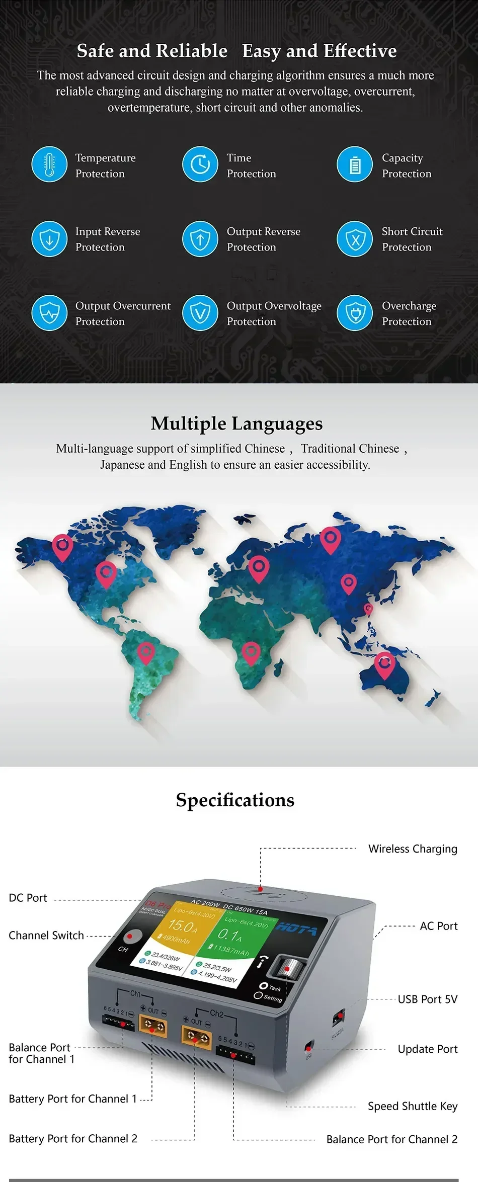 Safe and Reliable, Easy and Effective - The most advanced circuit design and charging algorithm ensures a much more reliable charging and discharging no matter at overvoltage, overcurrent, overtemperature, short circuit and other anomalies.