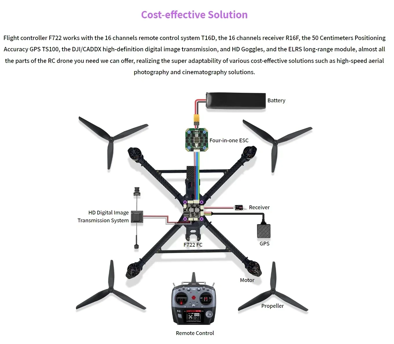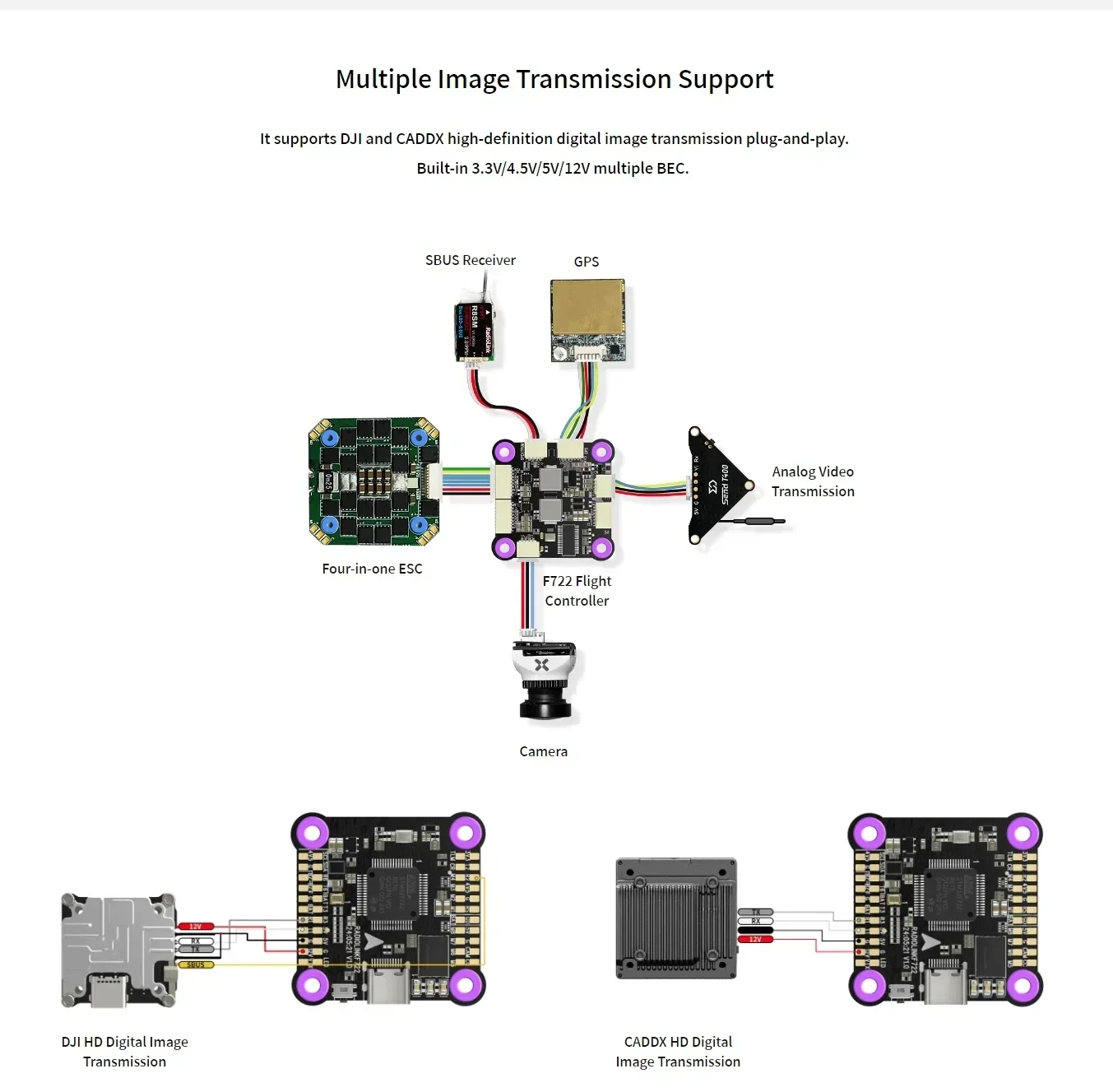 Multiple Image Transmission Support: It supports DJI and CADDX high-definition digital image transmission plug-and-play.