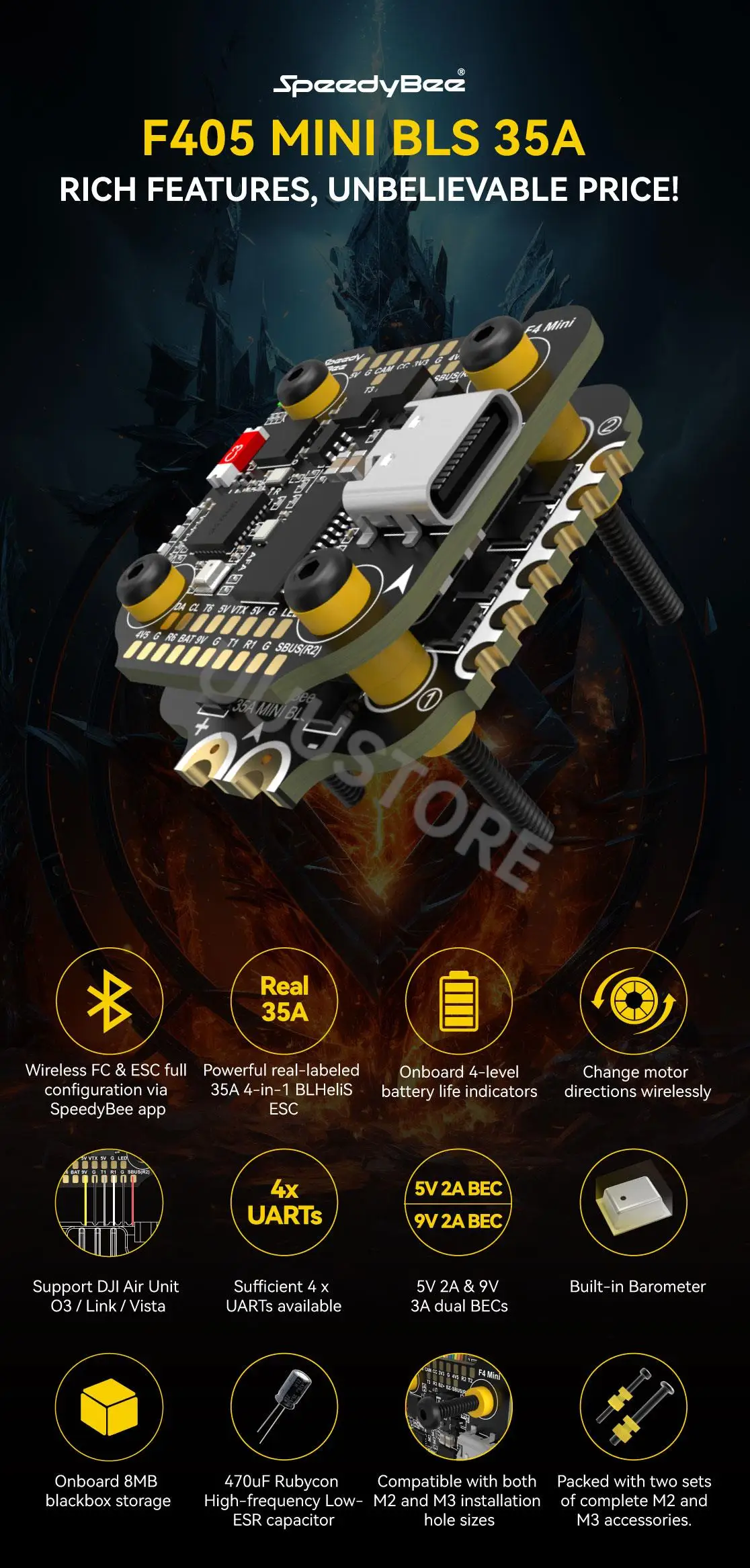 SpeedyBee 35A BLHeli_S Mini V2 4-in-1 ESC |
