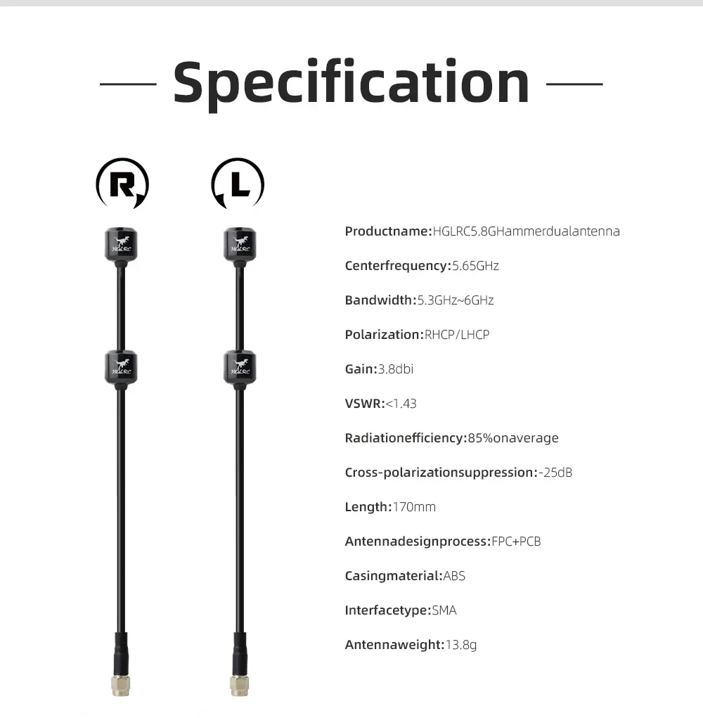 ‌Product Name‌: HGLRC 5.8G Hammer Dual Antenna