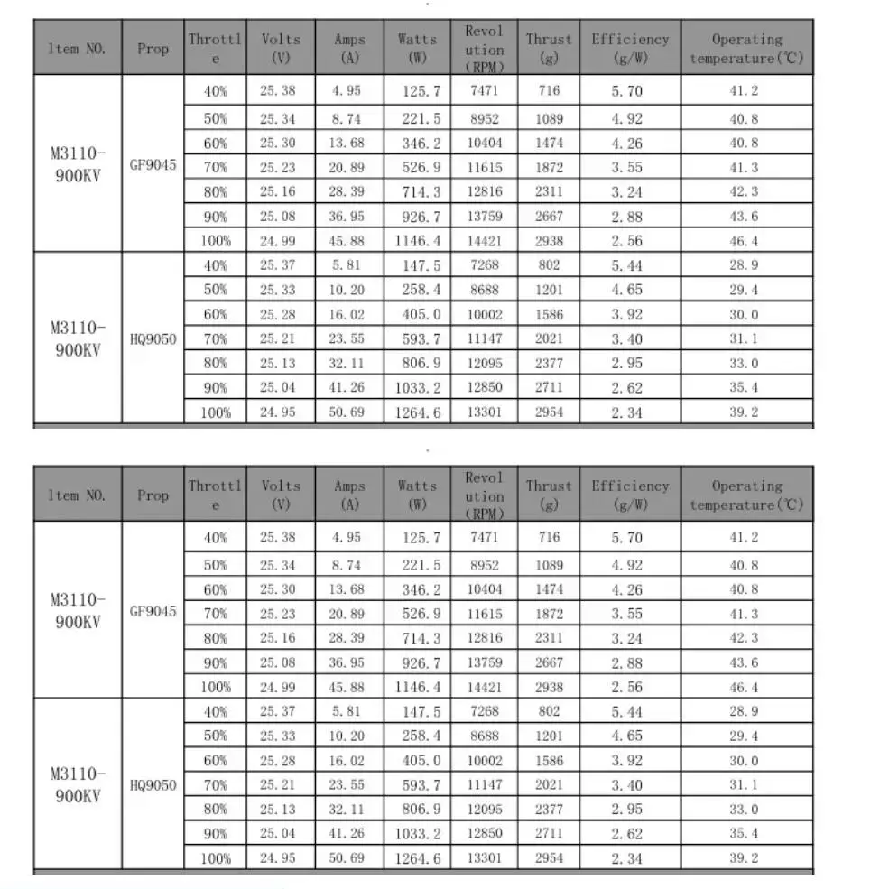 A3110KV 900KV Motor Specification