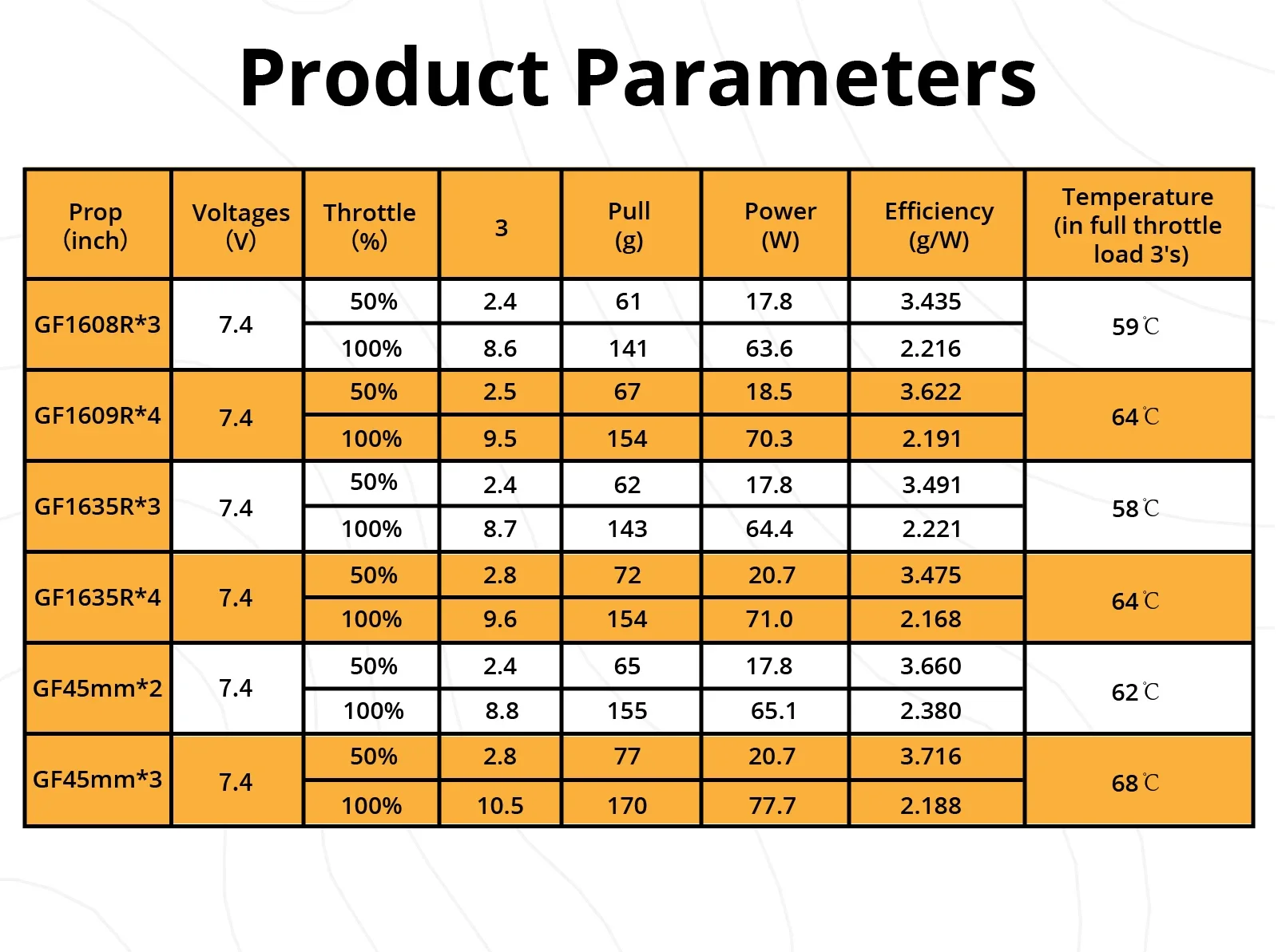 Product Parameters: