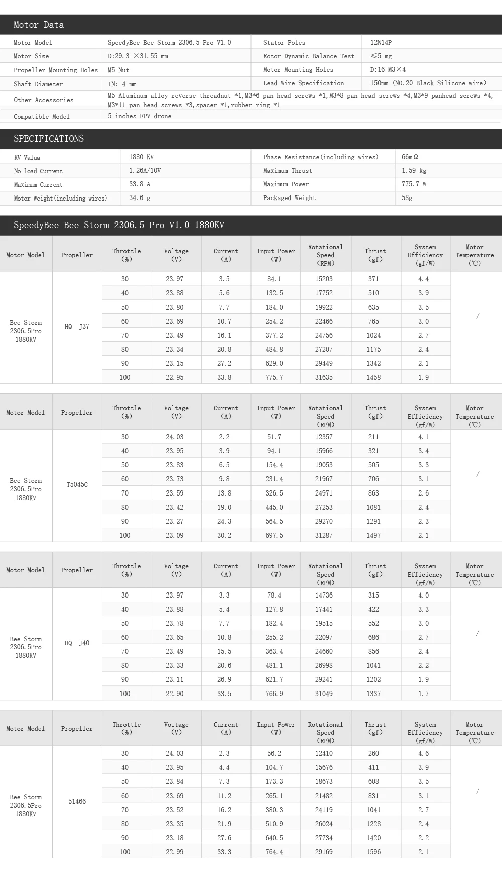 SpeedyBee BeeStorm 2306.5 PRO 1880KV Motor for Mario5 5 Inch FPV Drone - 4S 6S Brushless RC Quadcopter Racing Freestyle Motor-2