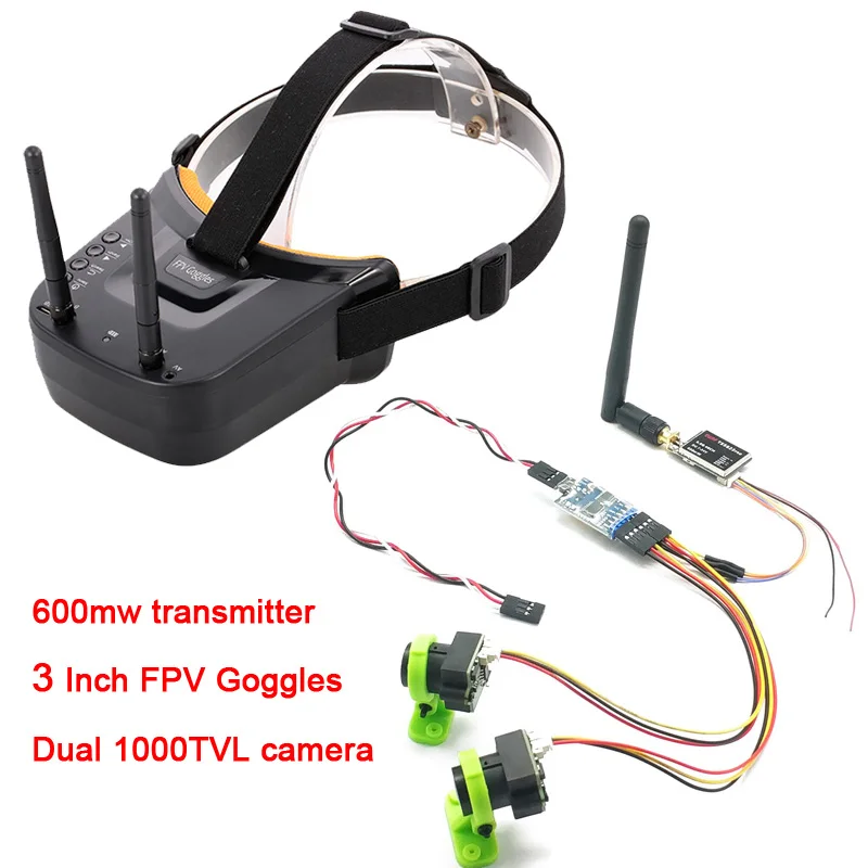 3 channel Dual Video camera CMOS 1000TVL fpv camera with 5.8G 40CH Dual Antennas 3 Inch FPV Goggles Video Glasses Headset HD
