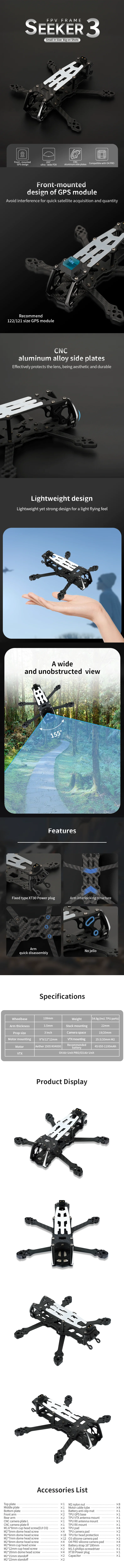 DeepSpace SEEKER3 3inch Frame Kit 139mmWheelbase3.5mm Arm Thickness Lightweight For DJI O4PRO O3 AIR UNIT forRC FPV Racing Drone-3