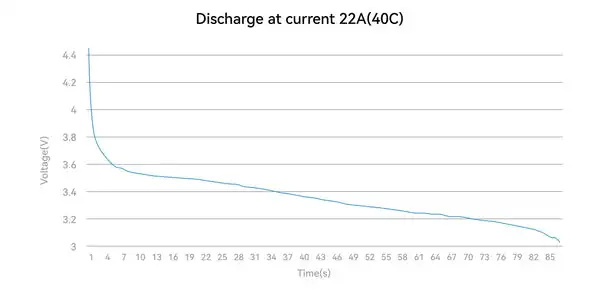 The below picture shows the discharge of BT2.0 550mAh 1S battery in 22A (40C).