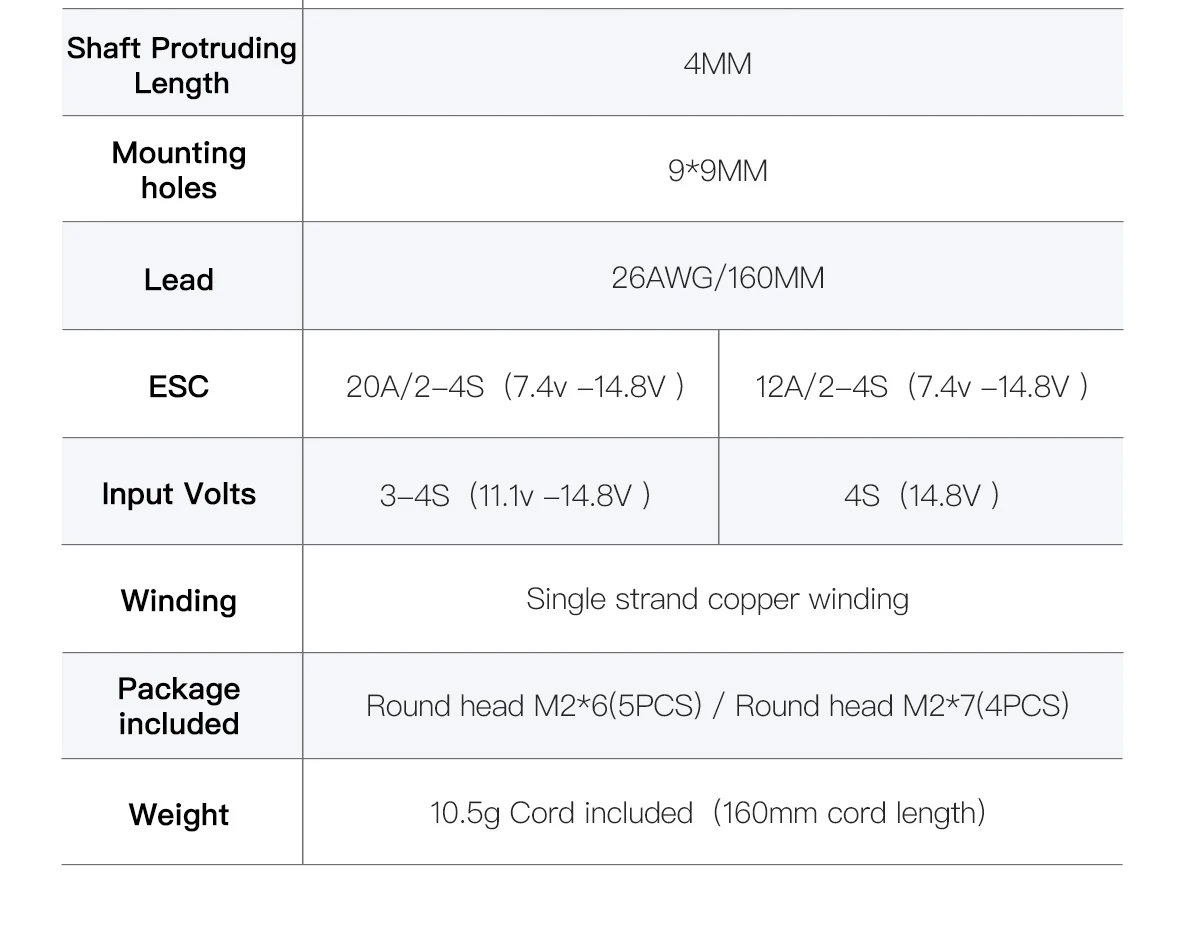 • Input Volts: 14.8V(4S LiPo)