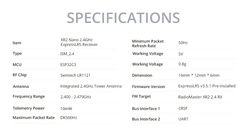 Item: XR2 Nano 2.4GHz ExpressLRS Receiver