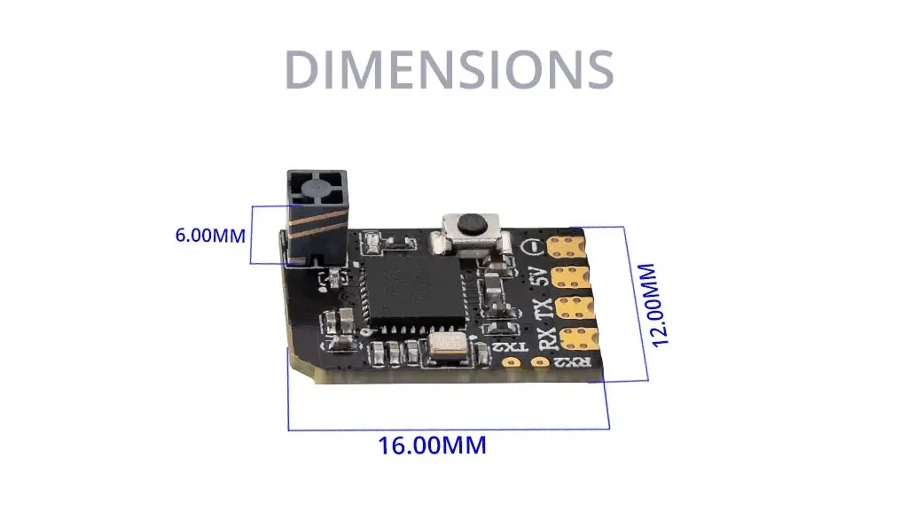 The XR2 Receiver is a nano sized powerhouse engineered for 2.4GHz ExpressLRS, featuring an integrated tower antenna that delivers exceptional reception within its ultra-compact design. With a footprint of just 16x12mm and a lightweight of only 0.8g, it fits seamlessly into even the most space-constrained builds. Driven by the advanced Semtech LR1121 transceiver (third generation), the XR2 offers compatibility with all ELRS 2.4GHz transmitters and unlocks the benefits of DK500Hz mode for LR1121-based systems, ensuring unparalleled reliability and responsiveness. The built-in Wi-Fi module simplifies firmware updates and configuration via a WebUI on your PC or mobile device. With ultra-low latency and high refresh rates, the XR2 stands out in Whoops, micro drones, and fixed-wing models, where every gram and millimeter counts for peak performance.