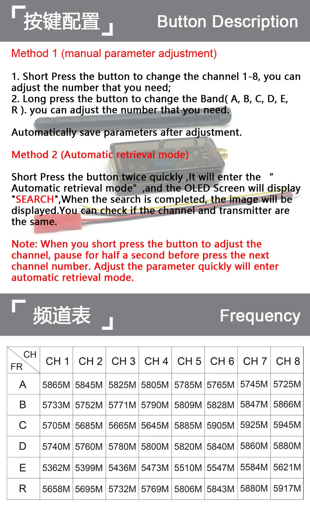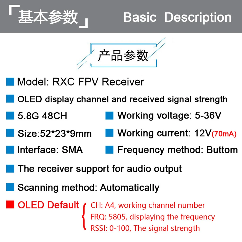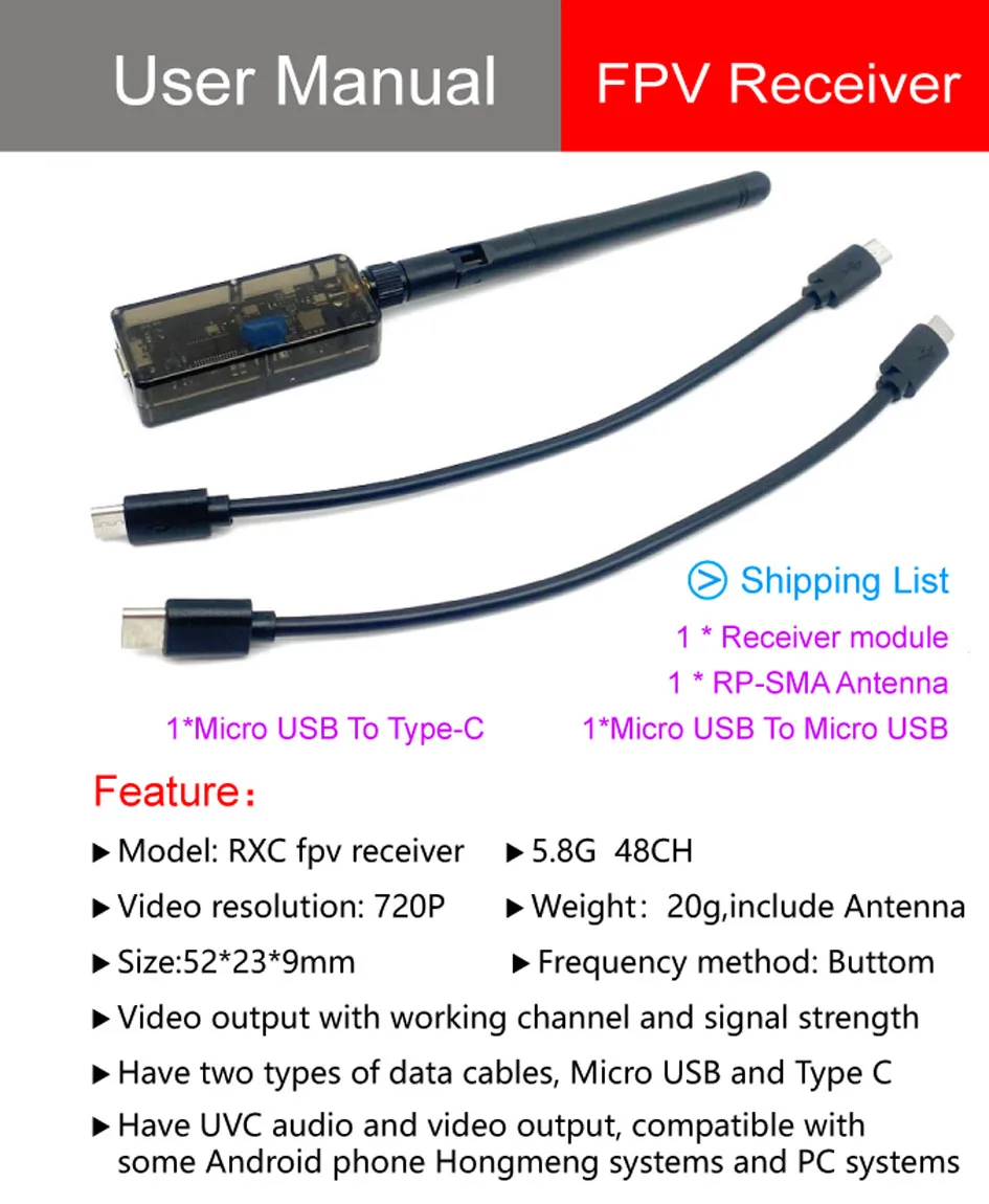 RXC 5.8G 48CH UVC Video Downlink OTG VR Mobile Phone Receiver +5.8G 48CH FPV Receiver OLED Display 5-36V SMA For RC Drone