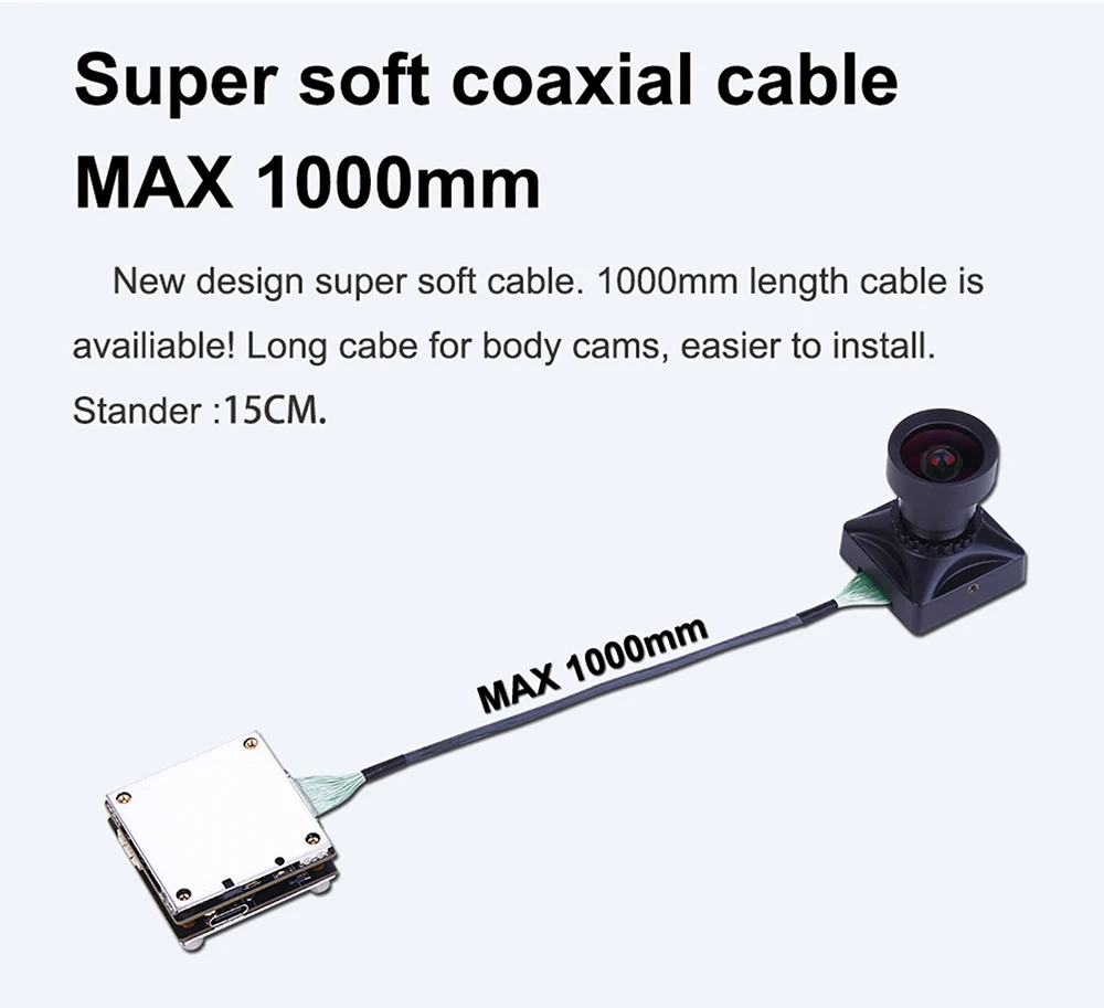 7. 1000mm length cable isavailiable! Long cabe for body cams, easier to install.