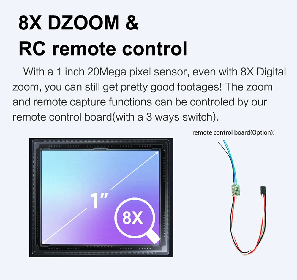 1.The zoomand remote capture functions can be controled by ourremote control board(with a 3 ways switch).