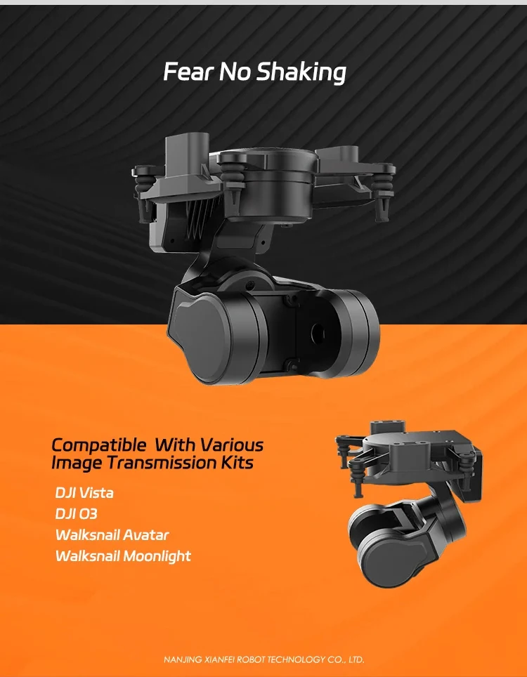 The XF C-20T 3 axis fpv gimbal is compatible with a variety of digital fpv systems such as DJI O3, Walksnail Avatar, Walksnail moonlight, and 19mm width anolog fpv cameras. With a 3 axis nonorthogonal mechanical stablization structure and high torque motors, the C-20T is able to provides an extreme staliztion effect against the vibration and high-speed air impact.