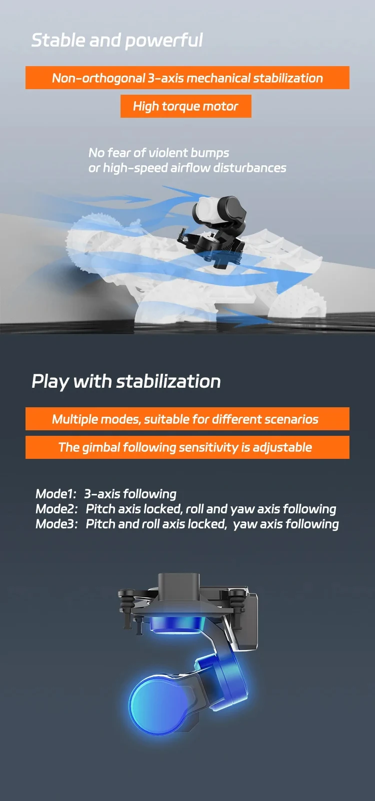 Gimbal Type: 3-axis Nonorthogonal Mechanical Stabilization